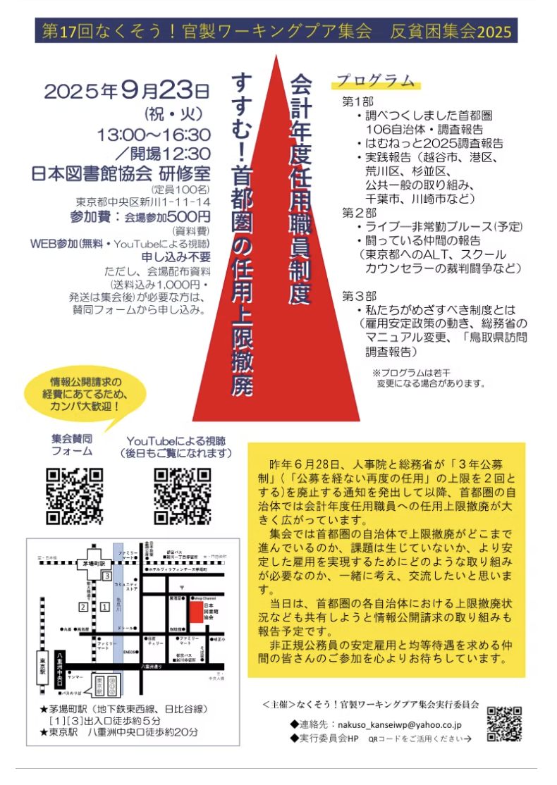 第17回なくそう!官製ワーキングプア集会 反貧困集会2025★会計年度任用職員制度 すすむ!首都圏の任用上限撤廃