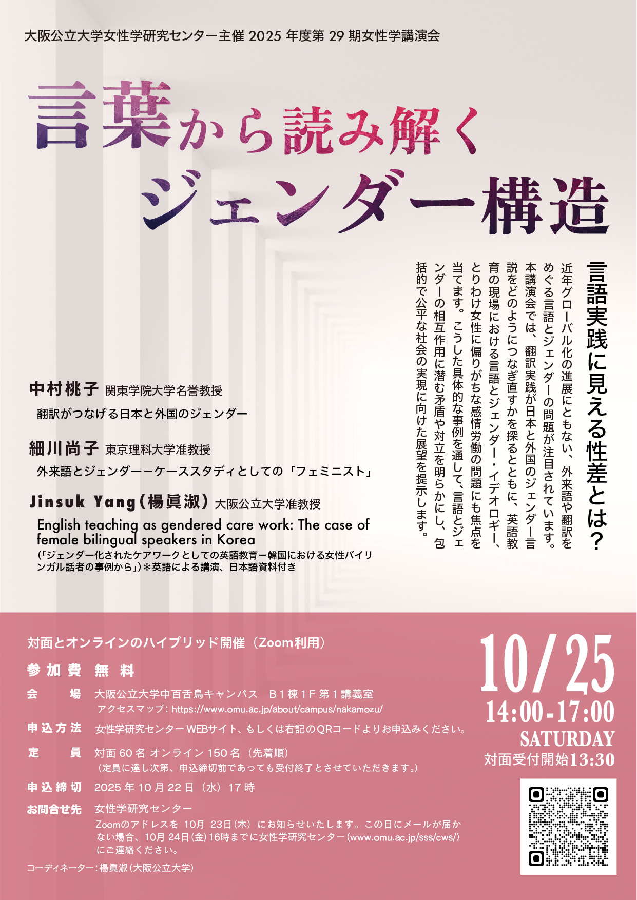 | 連絡先: | 大阪公立大学女性学研究センター(WEBサイト問い合わせフォームまで) |