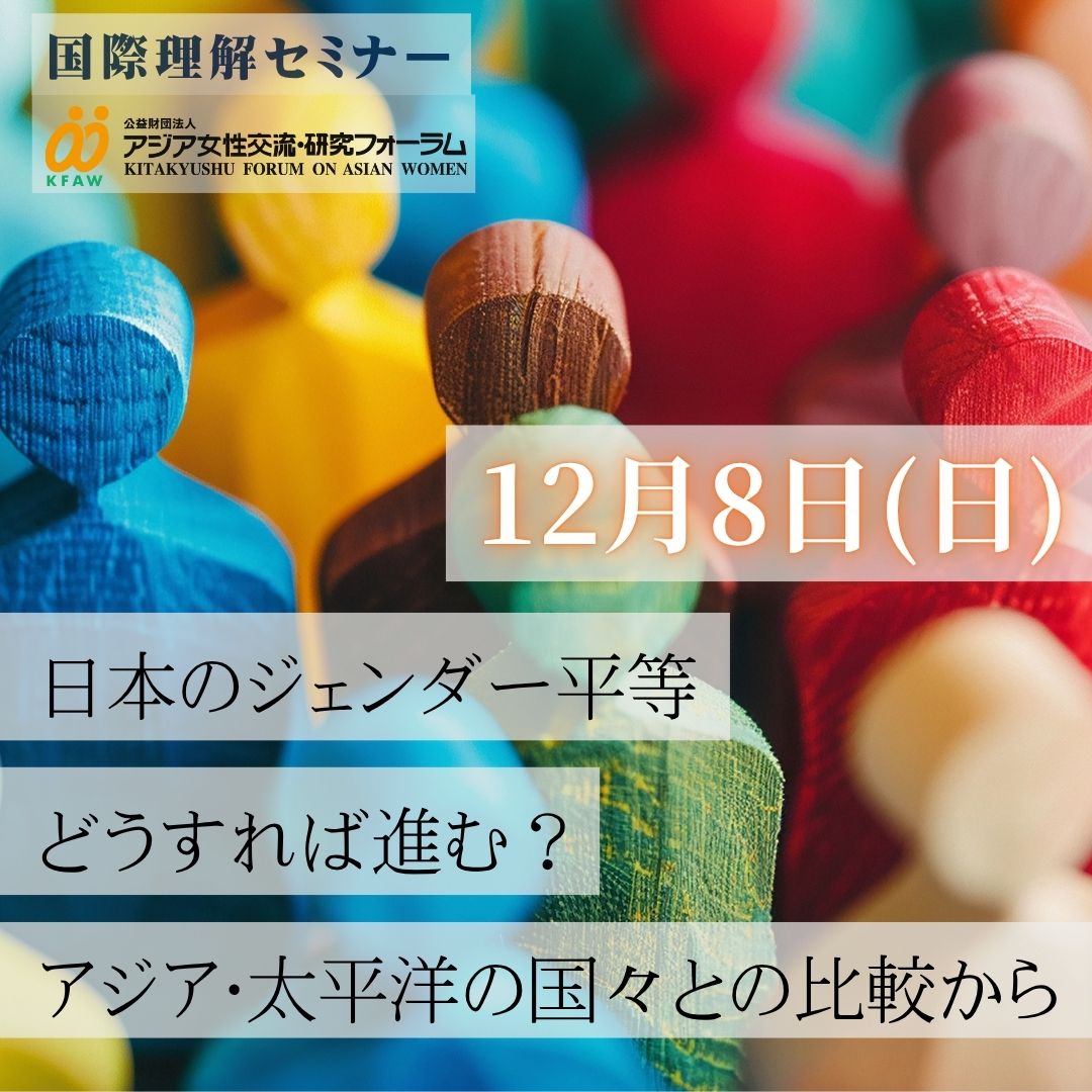 | 詳細: | アジア・太平洋地域の国々は、どのように女子差別撤廃委員会の勧告に取り組んでいるのでしょうか。マレーシアやフィジー、ネパールの事例を紹介しながら、各国の取り組みを参考に、日本のジェンダー平等の具体的な進め方を考えます。 講師 秋月 弘子氏(亜細亜大学教授、女子差別撤廃委員会委員) お申し込みはコチラから https://forms.gle/aNF2wMKyhAScMsrv7 |