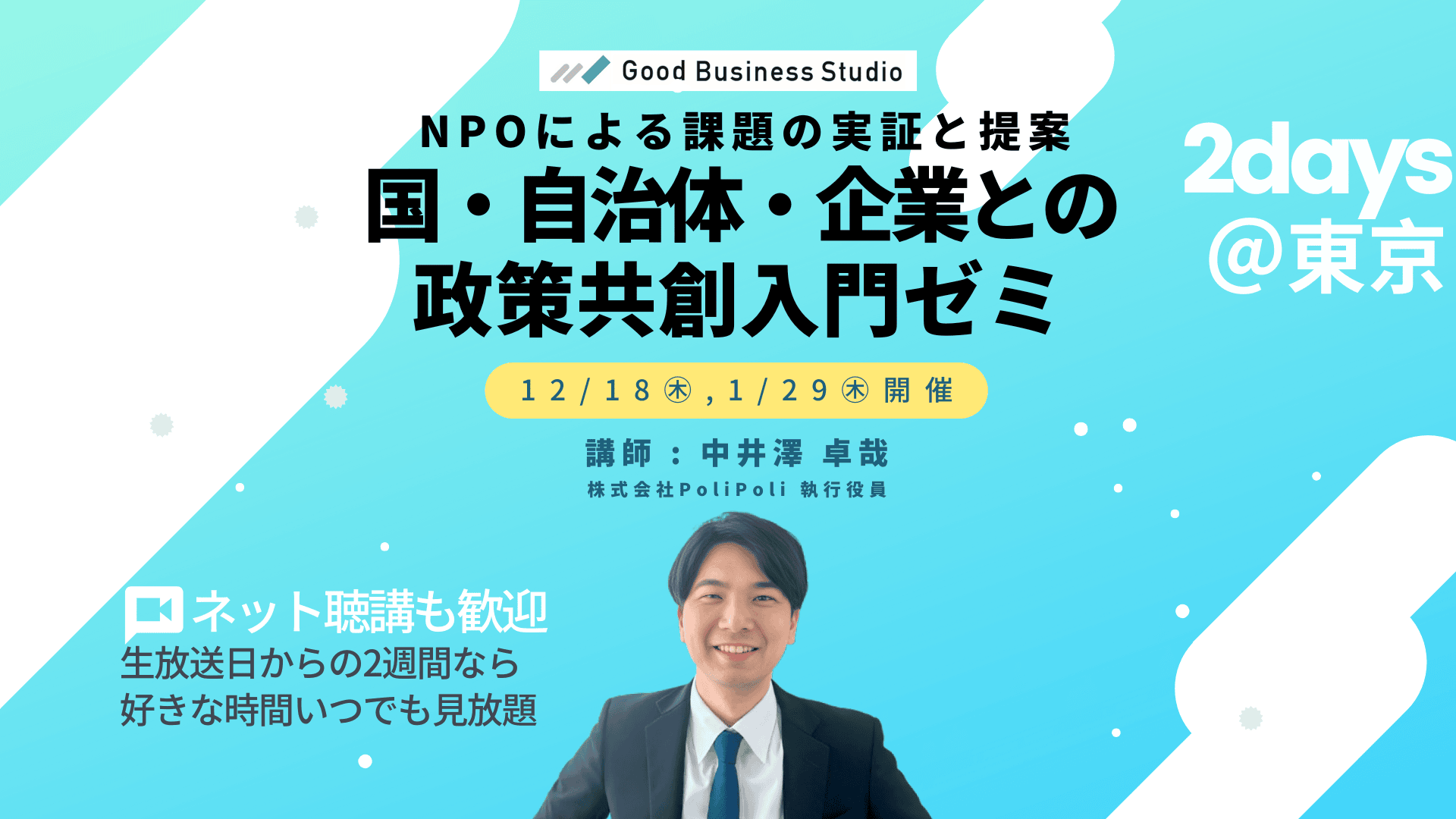 【12月18日(木)から全2回開催】NPOによる課題の実証と提案「国・自治体・企業との政策共創」入門ゼミ(団体プラン対応ゼミ)