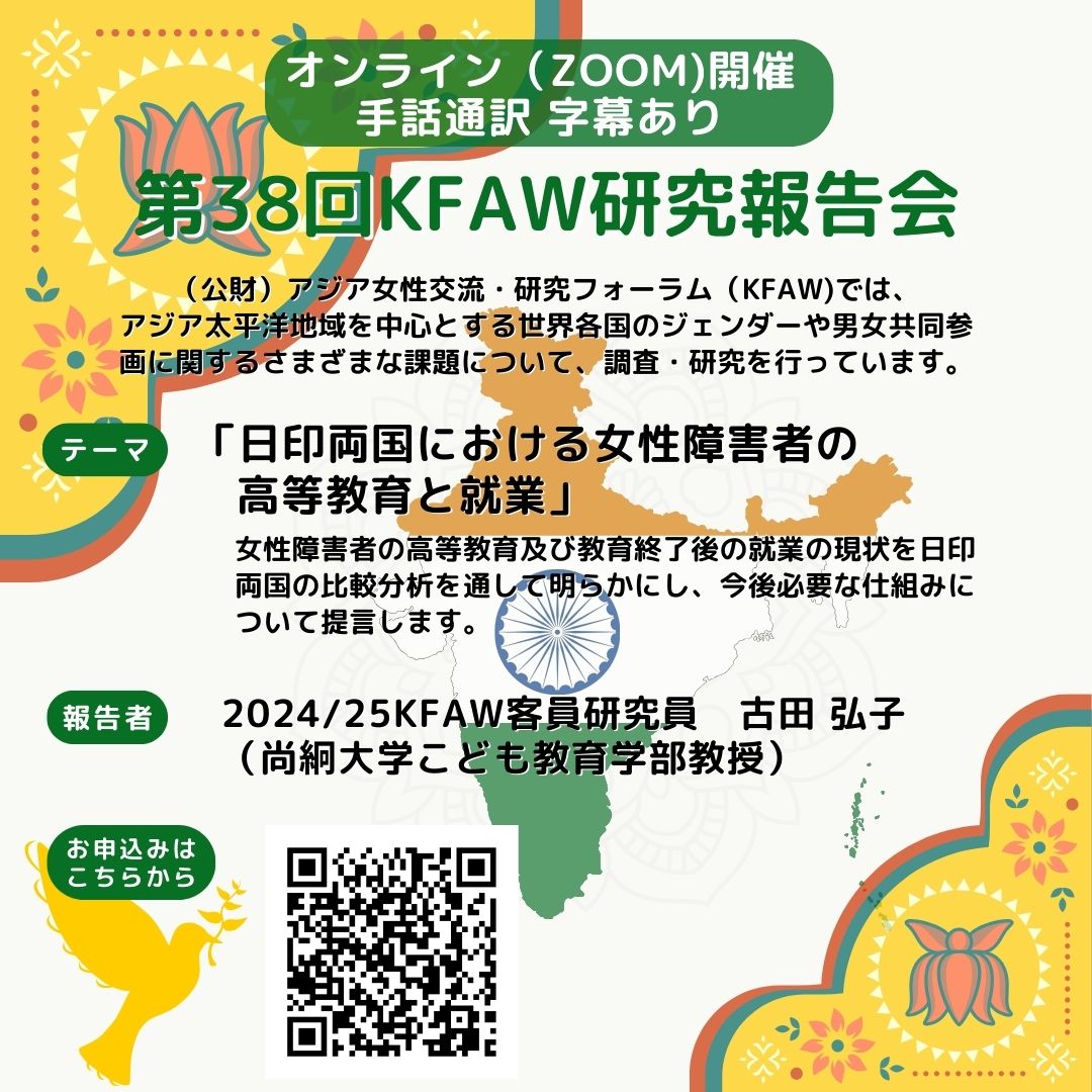 第38回 KFAW研究報告会(オンライン / 手話情報保障あり)
