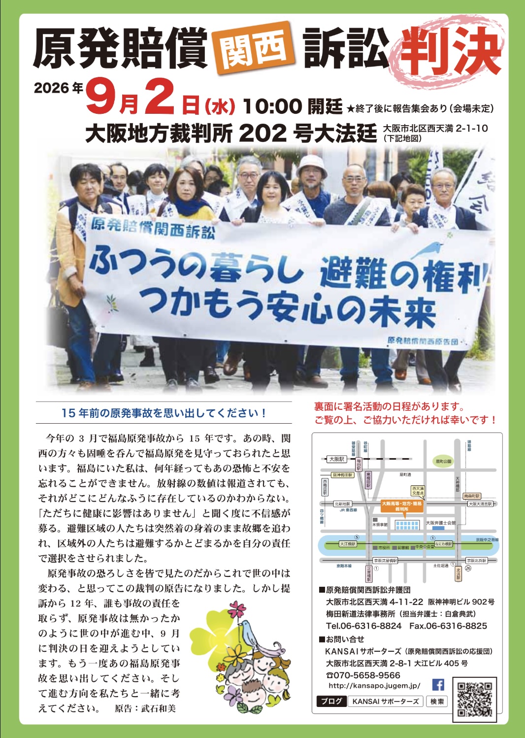 【大注目の判決#原発賠償関西訴訟 !】2026年9月2日(水)10時開廷 #判決 です #大阪地方裁判所 #松本展幸裁判長 #松本コート
