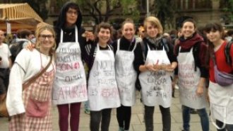 三木草子です。忙しい2週間が過ぎました。女たちの活動の写真をお送りします。説明は写真順です。 5月19日の「女たちのストライキ」デモ。18時半にバルセロナの観光の中心地、大聖堂前広場に集合、19時半からメインショッピング街をフランスデ