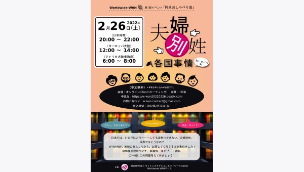 2022年2月26日に開催した「第1回W-WANおしゃべり会:夫婦別姓-各国事情」では、韓国、中国、シンガポール、イラン、コロンビア、ドイツ、日本出身・在住のW-WANメンバーがそれぞれの国の夫婦別姓をめぐる事情を紹介しました。 そのなかから今回は韓国の事情について、おしゃべり会でのお話をまとめ追記したものをご紹介します。 ------------------------------ 夫婦別姓-韓国の事情 韓国では、夫婦が別姓を使う。韓国女性は結婚しても、自分の父親の姓(旧姓)を使うのだが、これは女性の地位が高いからではなく、家族の一員として嫁を認めない伝統的な慣習に基づいている。では、子供の姓はどうか。現在、韓国の民法では、夫婦の合意がある時、子供に母親の姓をつけることが可能だが、普通、子供は父親の姓を使う。子供が大人になってから、自分の姓を母親の姓に変えたい時は、簡単には変えられない。 戸主制との闘い 子孫は父系を継承するものとみなし、父姓のみを名乗らせる、これ